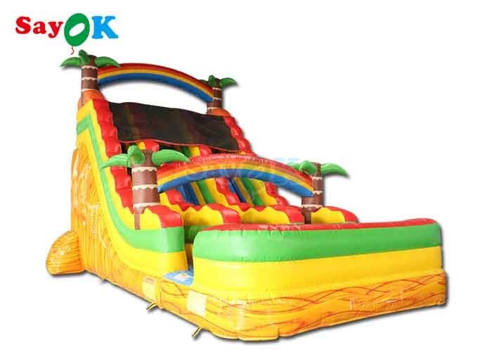 Deze opblaasbare glijbaan heeft een opzetoppervlakte van 29,5 x 18 voet en is 19,7 voet hoog.